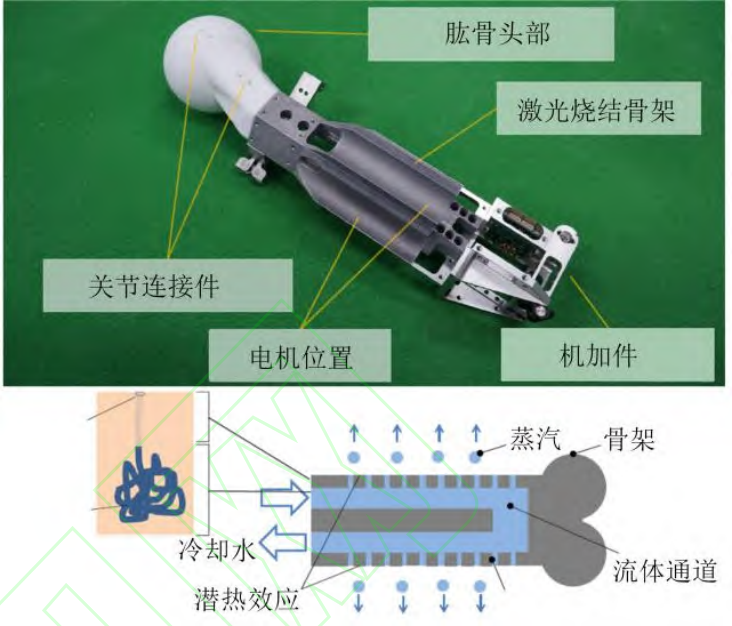 日本东京大学研发出一款会“流汗”的仿人机器人“Kengoro”,其研究人员注意到仿人的“骨架”表面与内部有充分的空间没有得到利用,设计了一种双层多孔骨骼结构,电机直接安装在这种骨架上,作为支撑件的同时,骨架内部设计有冷却水道与表面的微孔相连,水分可以通过毛细作用相变蒸发造成一种“发汗”的效果冷却电机,发汗原理如图 3 所示。